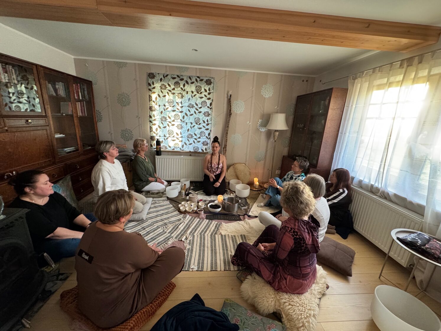 Nometnes programma bija fantastiska - patika gan man, gan dāmām, gan lektorēm, kuras mūs aplaimoja ar savu harismu, spēku, sievišķību, gudrību un sirds siltumu! Liels paldies Montai no Talsu Mantras - tik enerģisku garšīgu kakao nebijām baudījušas. Bet tas nebija viss - mūsu ķermeņi tika izvibrēti ar pārpasaulīgām kristāla bļodu vibrācijām, lietus koka nomierinošajām skaņām un citām dvēseliskām skaņām. Tas bija maģiski! Tieši tā iesākām nometni piektdienas vakarā.